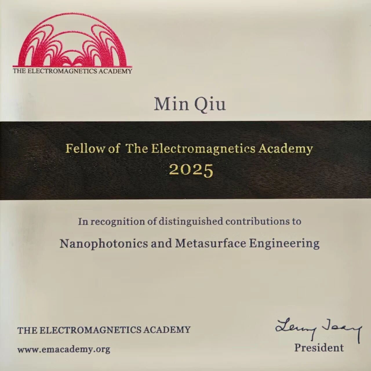 国际电磁科学院Fellow称号旨在表彰在光子学与电磁学领域取得非凡成就的杰出人士。