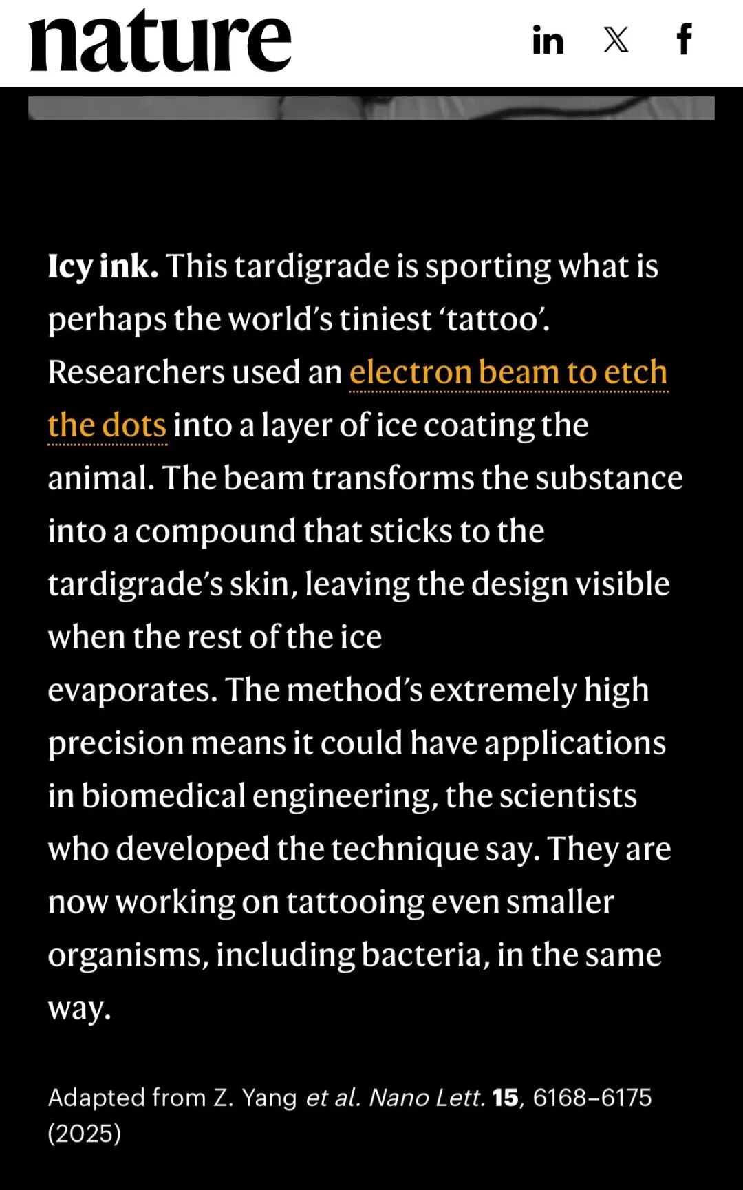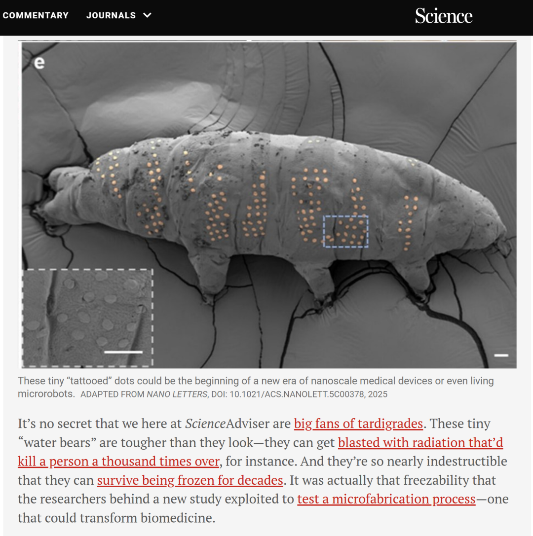 (Image Placeholder: Science reports on "Tattooed Tardigrade")